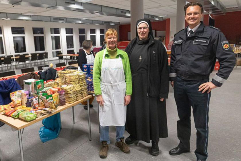 Auch die Bremer Polizei unterstützt das Projekt RaphaelOase der katholischen Kirchengemeinde St. Raphael im Stadtteil Osterholz-Tenever. Für die kostenlose Warenausgabe an Bedürftige sammelten Mitarbeiterinnen und Mitarbeiter aus allen Bereichen der Polizei im Dezember 2022 Lebensmittel.